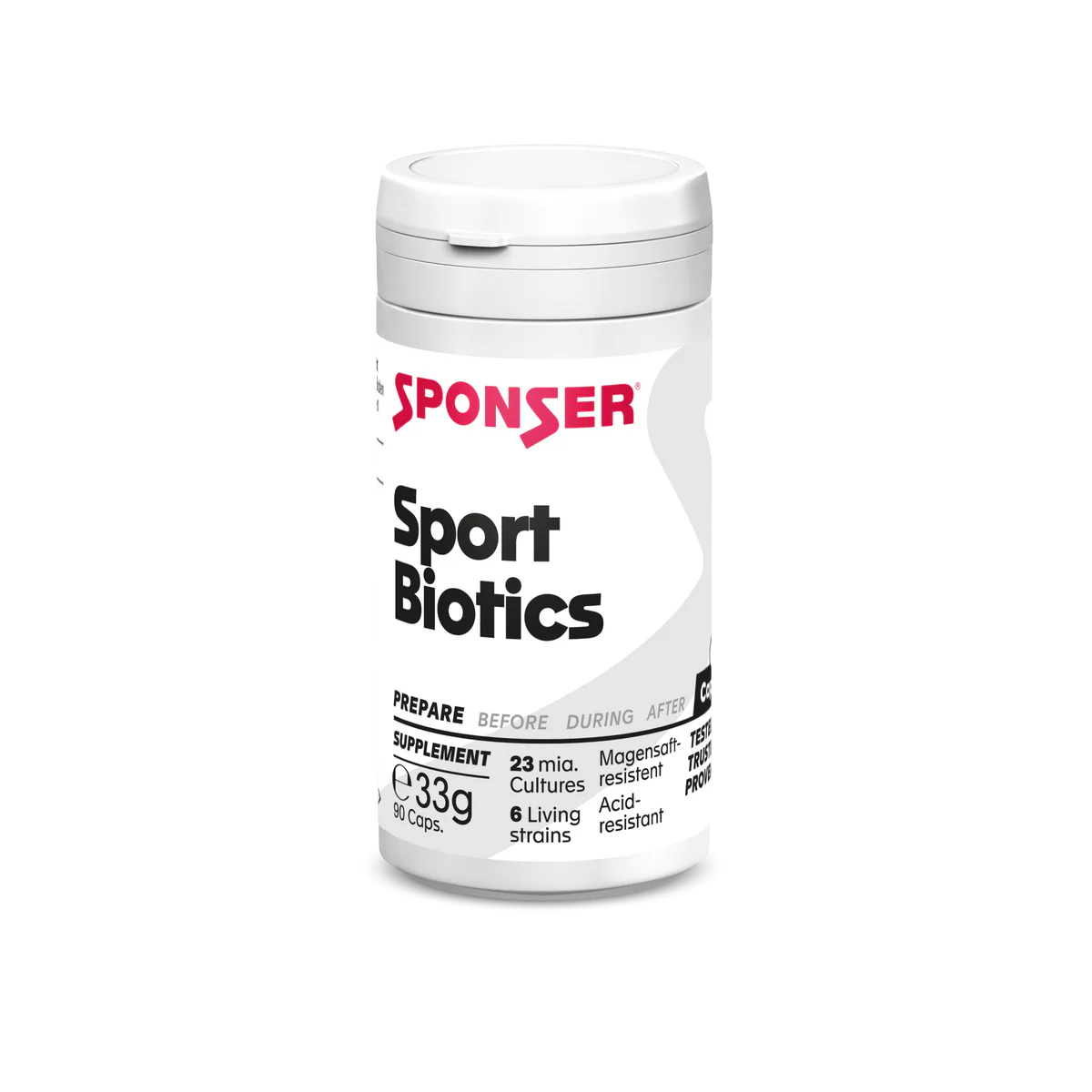 Sport Biotics – enteric-coated capsules with 20 billion live bacterial strains per capsule, so-called probiotics, as a dietary supplement. The enteric-coated capsules ensure that the bacteria are only released gently in the intestine. The selection of strains also allows storage at room temperature. Sport Biotics contains: